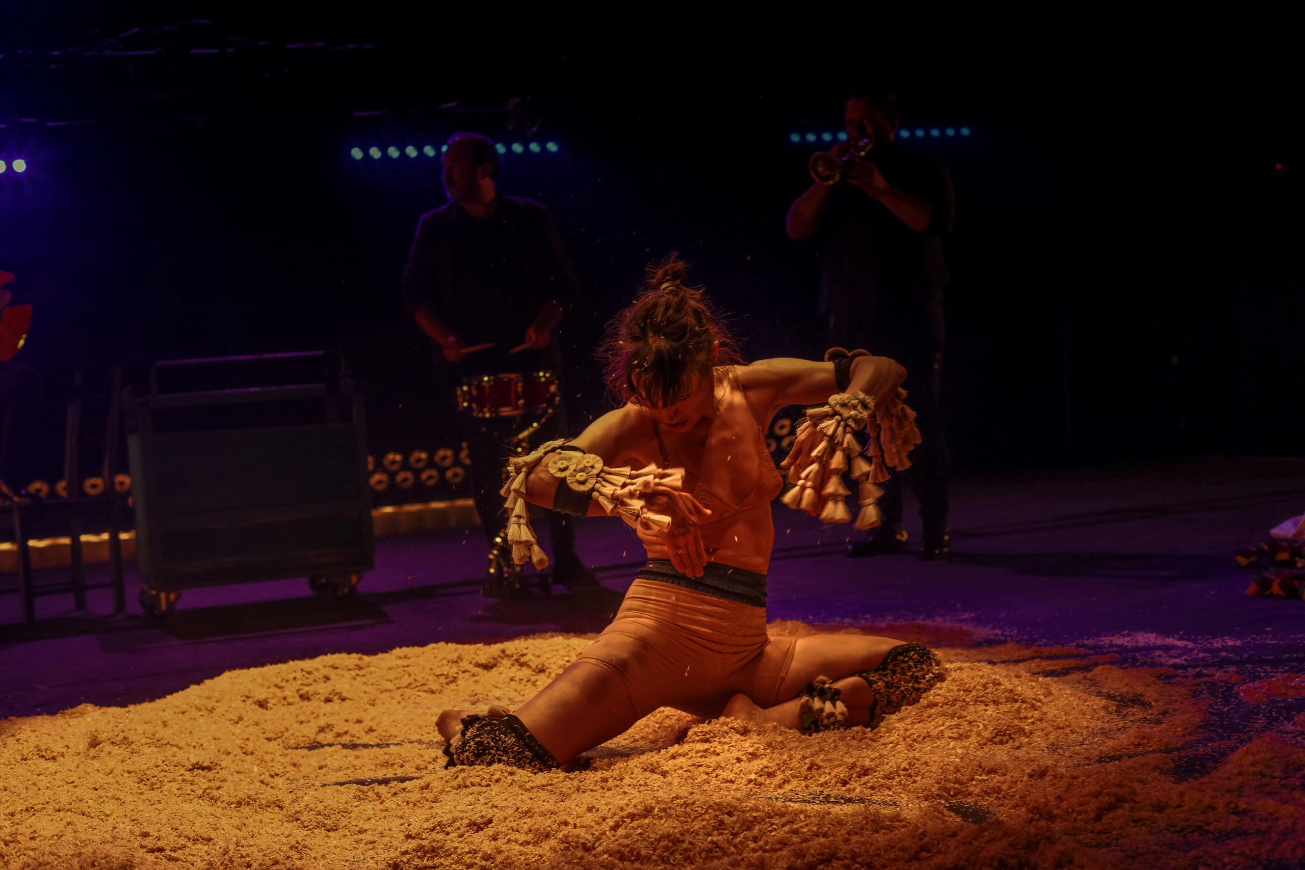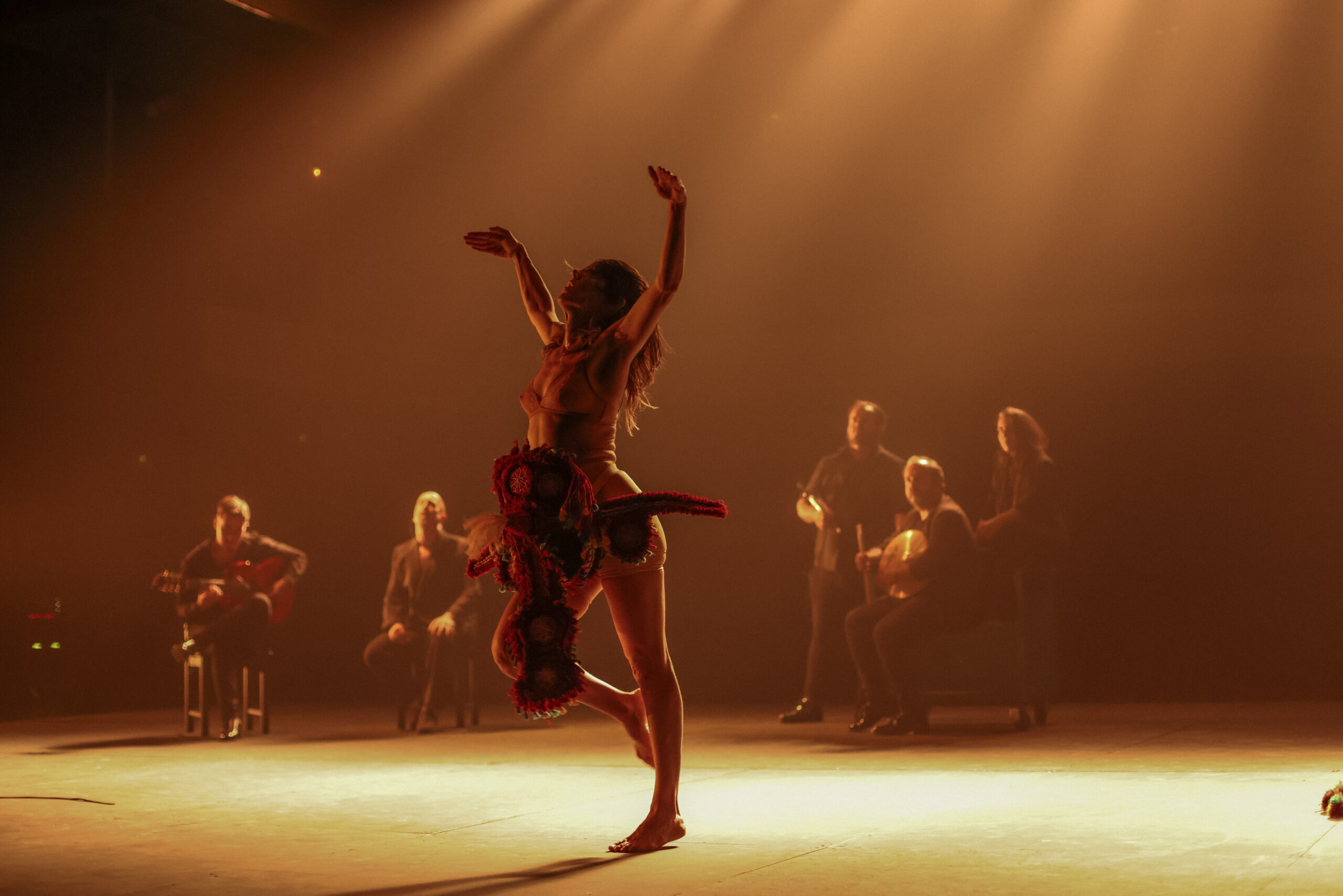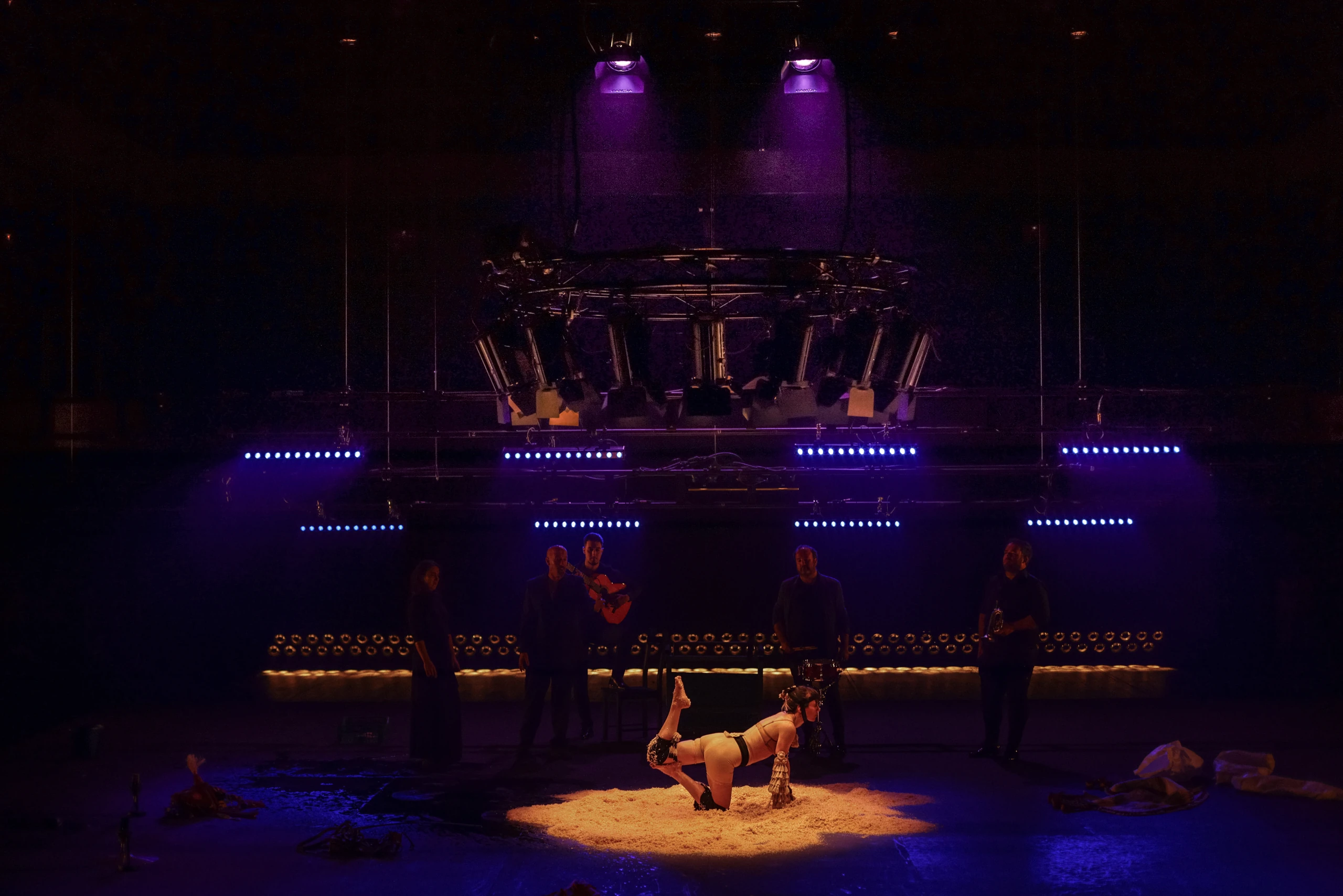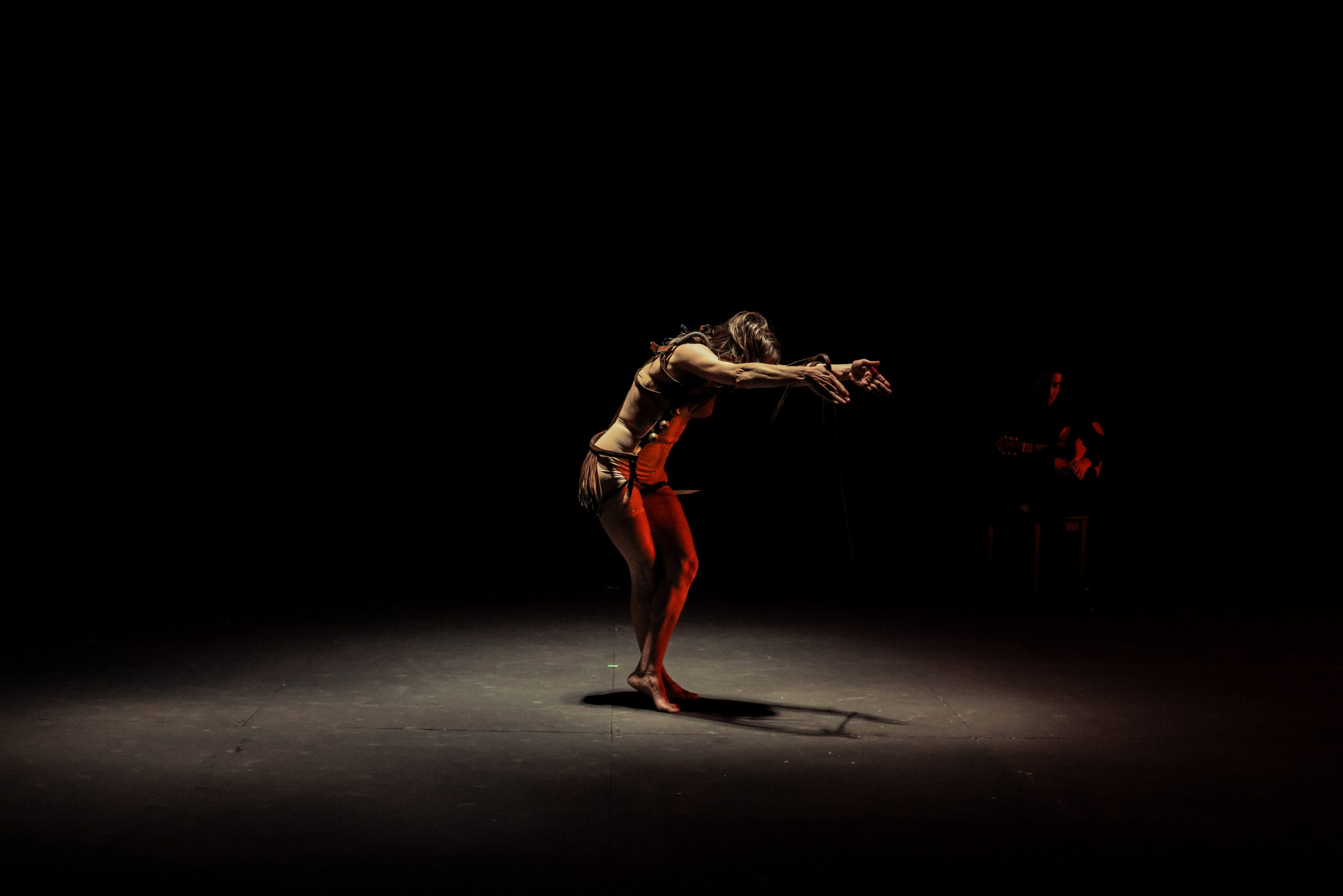 Mariana es el nombre de la cabra que acompaña al gitano errante, la del show, la que baila y le da de comer. Mariana es la mula con la que el campesino trilla, la burra de carga del azacán y la borriquilla que transporta al dios. El animal hembra es el cuerpo del trabajo, da igual la era que atraviese. En la obra, el cante alienta y anima a la fuerza productiva y el cuerpo recrea de forma libre la potencia del animal que se deja arrastrar por el compás de los órganos, como en los cantes a palo seco. Lo mueve, no la arqueología de las esencias, sino el puro deseo de encontrar la forma, el orden, la elocuencia. El cuerpo jondo derrocha energía, vida y muerte y esa es su radical y arcaica modernidad. El cuerpo jondo rompe a bailar, como las lágrimas, el sudor o la carcajada: con poderío, con vergüenza, ahí donde el proceso es tan visible como el resultado. Los lenguajes son impuros, mestizos, como todo lo que está vivo. Un baile esculpido en piedra y arcilla, esquemático, tosco y preciso como son los altares, los amuletos o las herramientas. Un baile tan abstracto y simbólico como utilitario y material.